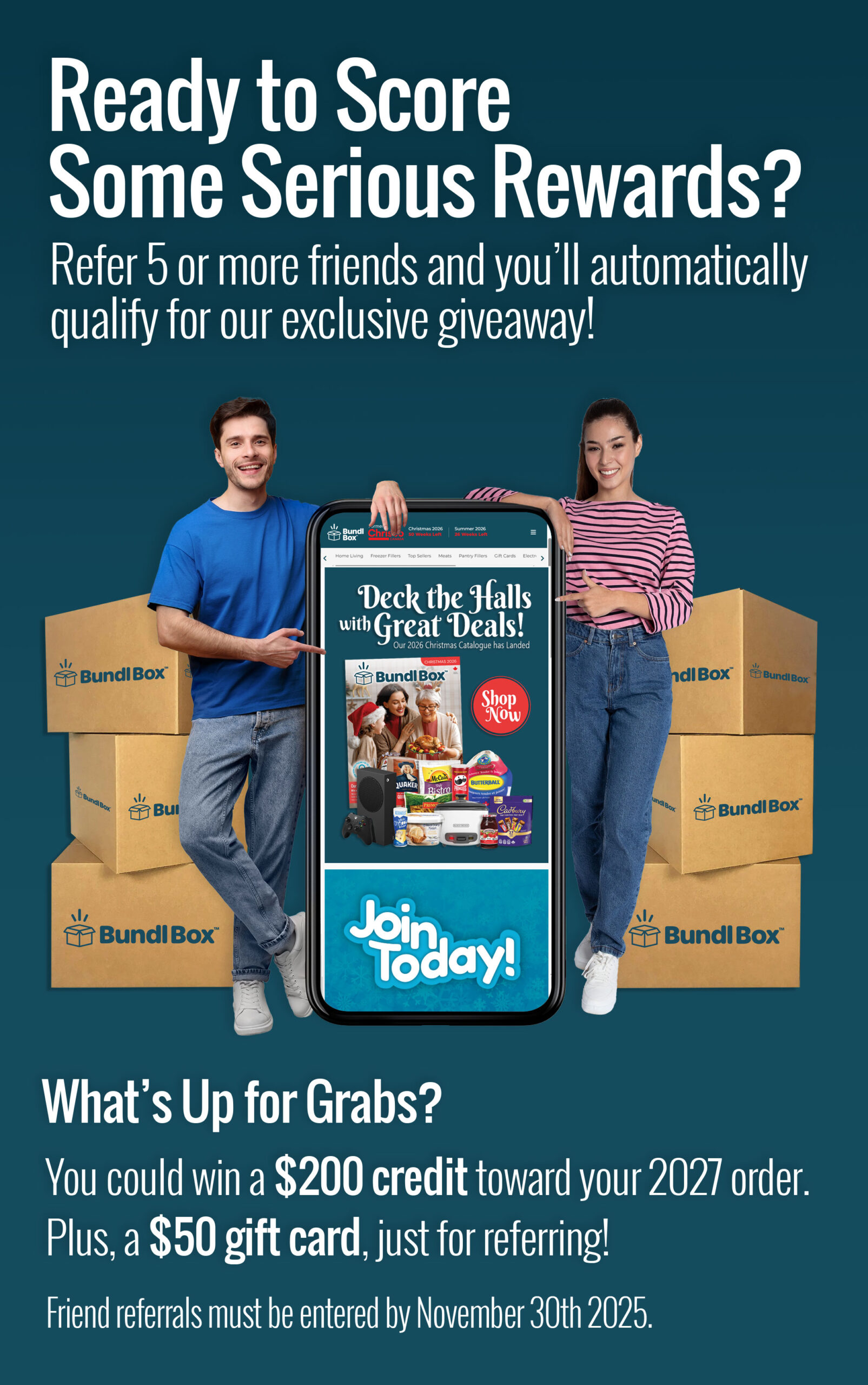 *Disclaimer:  Minimum Food Bundl order of $500 Required for entry.  One entry per qualifying order.  Giveaway ends October 20th, 2026. Winner will be contacted via email and announced on our social media channels.